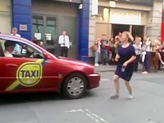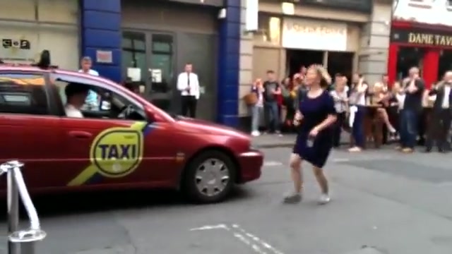 Taxi Driver Can't Get Through Crowd So He Joins In
