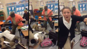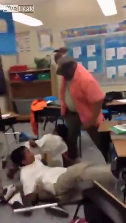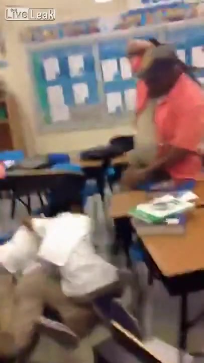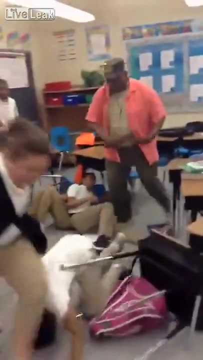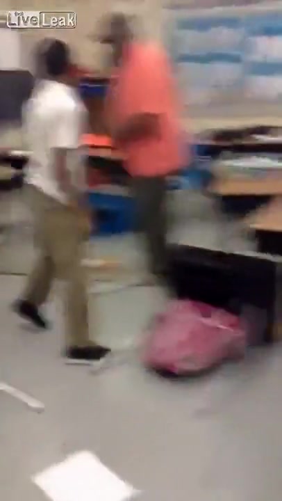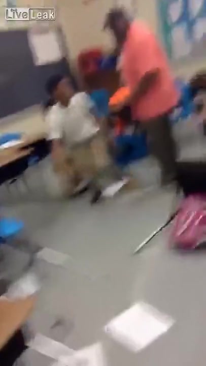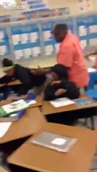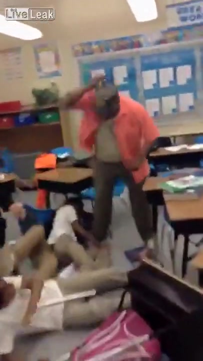 A teacher handles a classroom ruckus the old fashion way, with his belt!