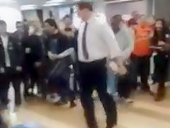 A high school kid was showing off in the cafeteria but little did he know his teacher was down for a good ole dance off too.