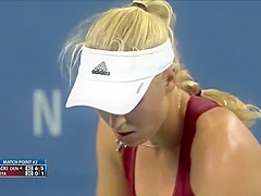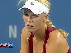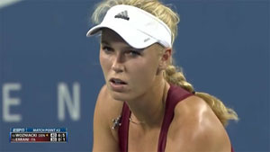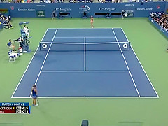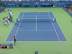 A tennis ball girl saved the day by snatching a bag that was flying over the court.
