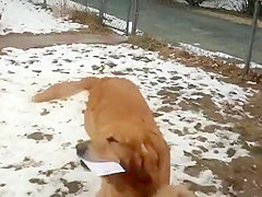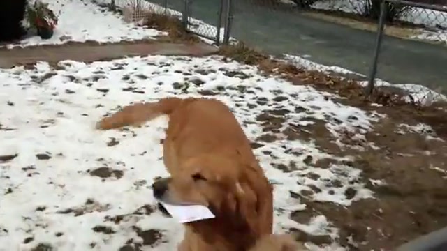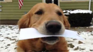 Every day this dog waits to collect the mail from his friend the mailman.