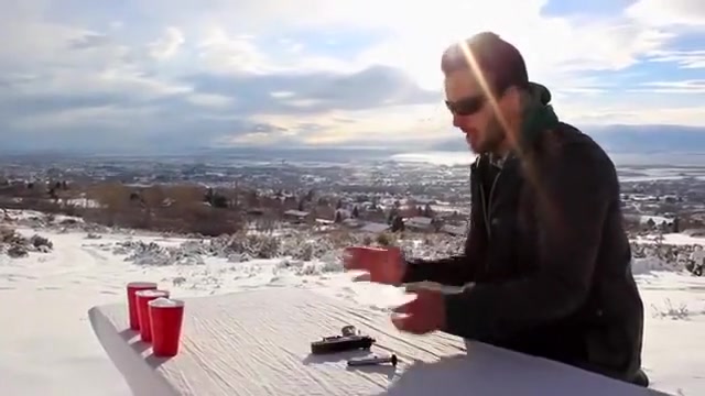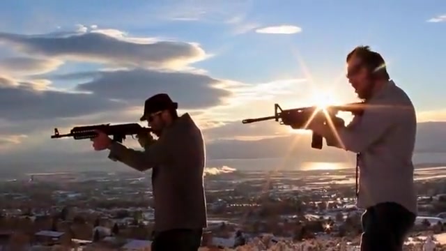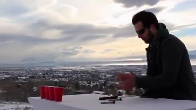 This guy does the cup song with guns.
