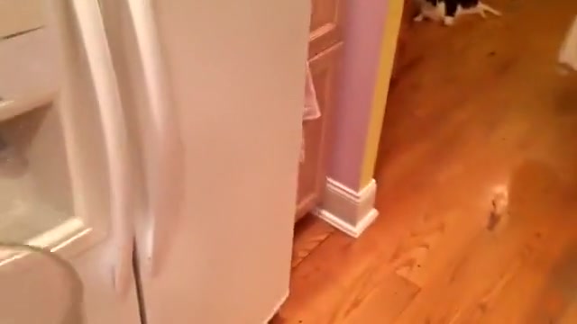 This guy's dog attacks his cat every time someone uses the ice machine on the refrigerator.
