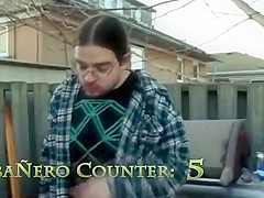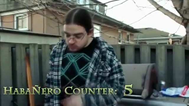 This guy does six habeneros, 15 Mega Warheads, cinnamon, Diet Coke, Mentos, and a gallon of milk. He throws in a couple good kicks to his nuts for good measure.