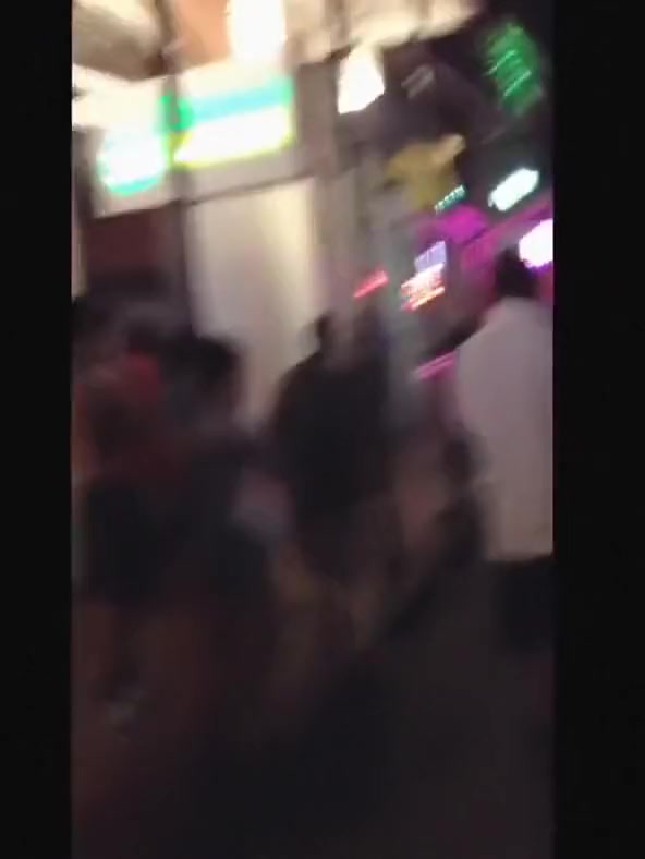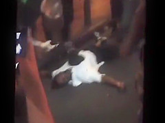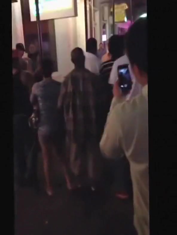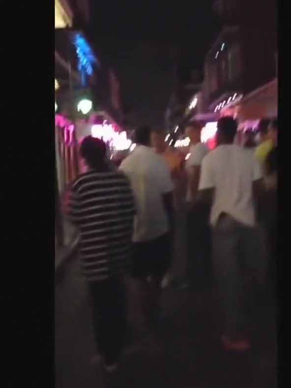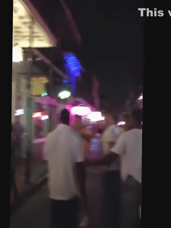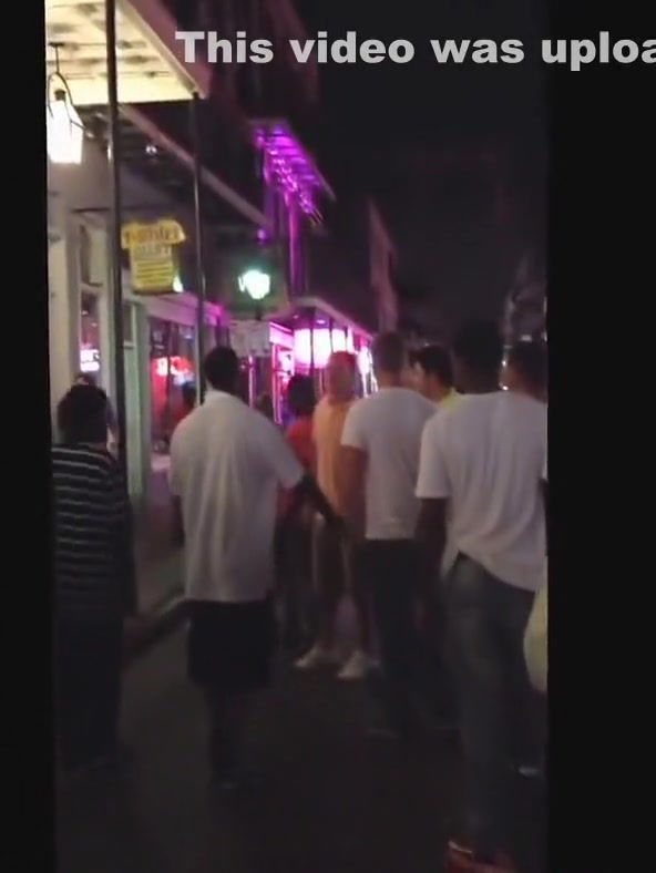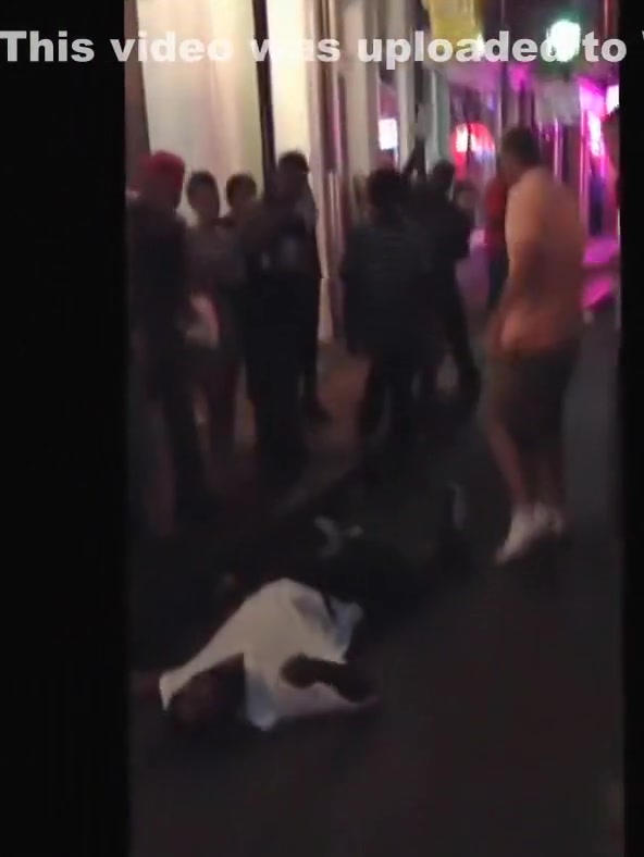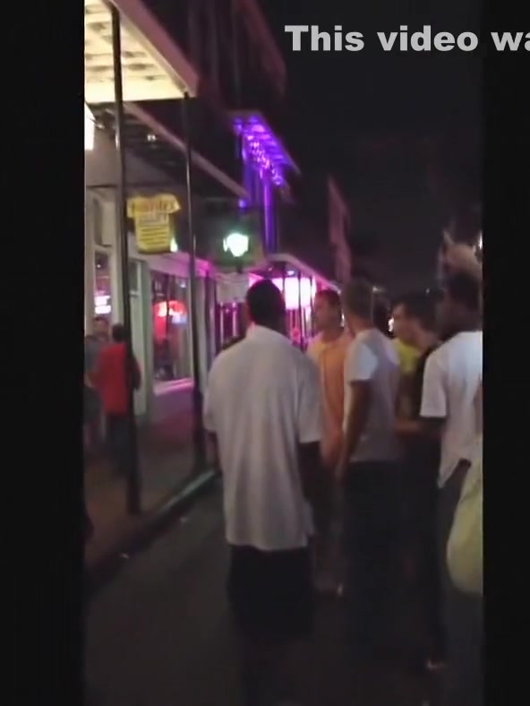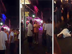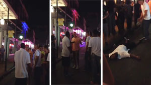 A white dude puts a black man to sleep on Bourbon Street.