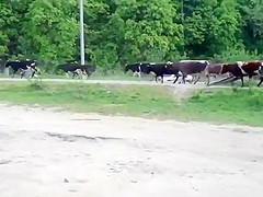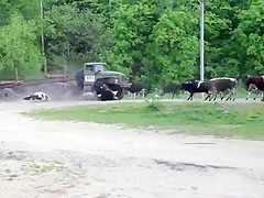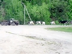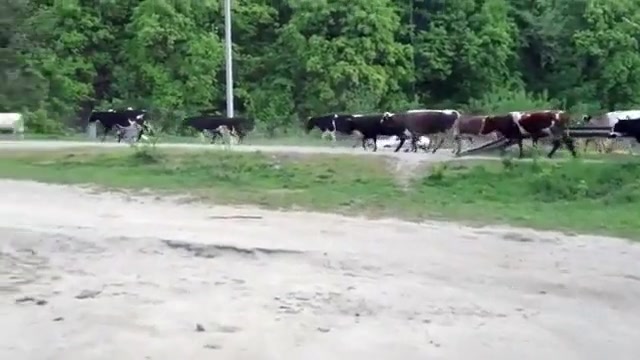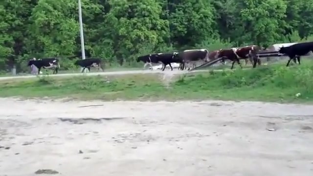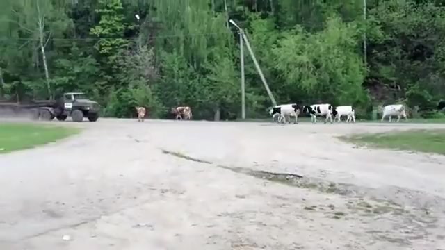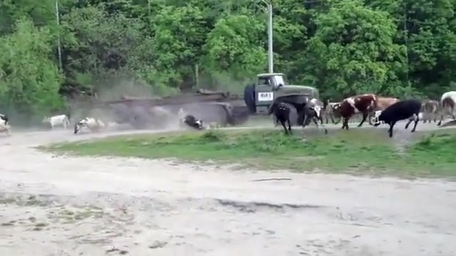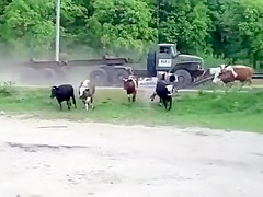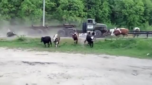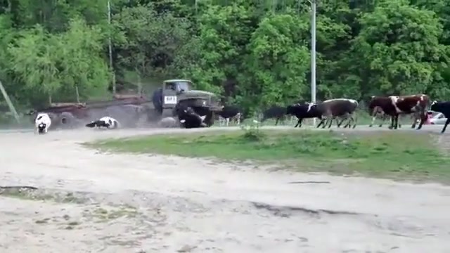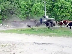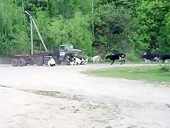 His brakes gave out at the worst possible time. Poor cows. 8-(