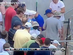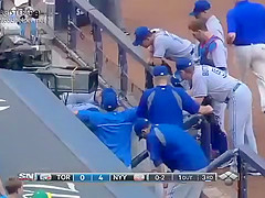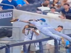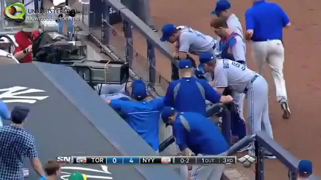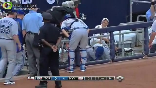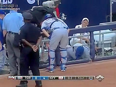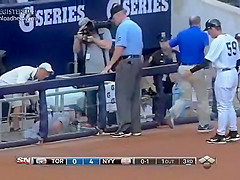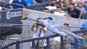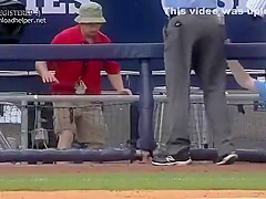 Now you see him, now you don't. Baseball Player Painful Catch Fail.