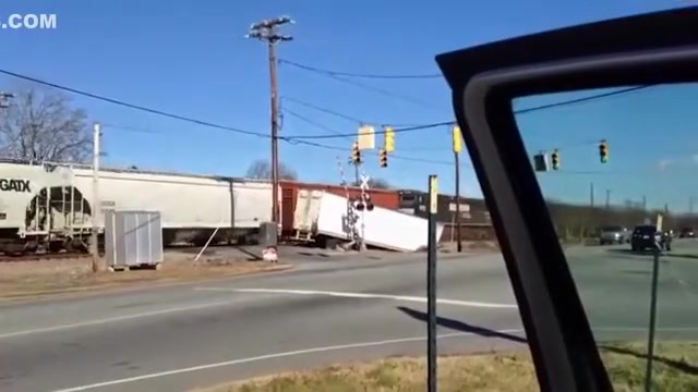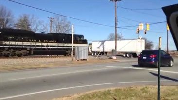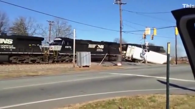 A train plowed into a tractor trailer stuck on the tracks in North Carolina.