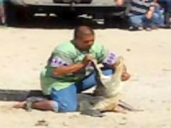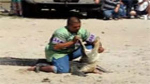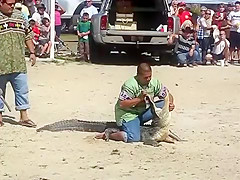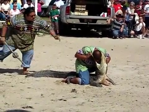 It turns out that when you stick your head inside an alligators mouth you might get bitten. Fail!