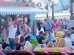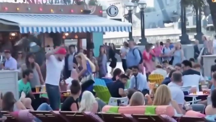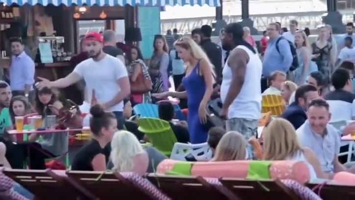 Big Guy Gets Bottled In The Face For Hitting On Another Dude's Wife