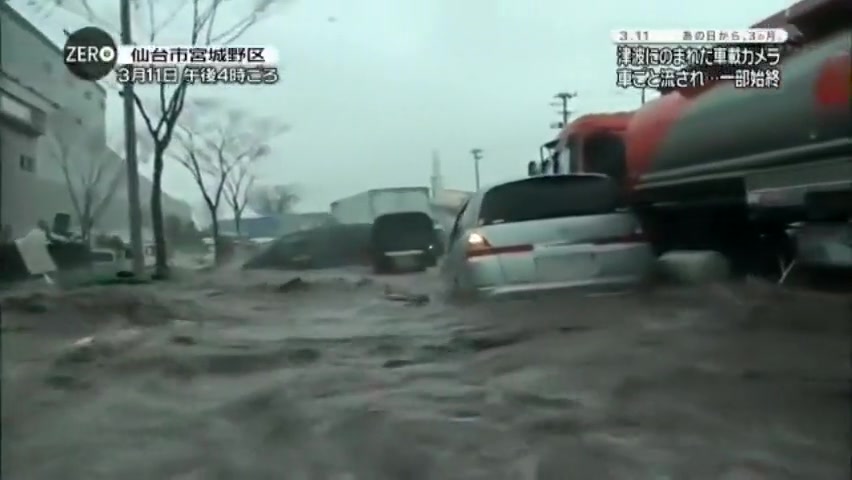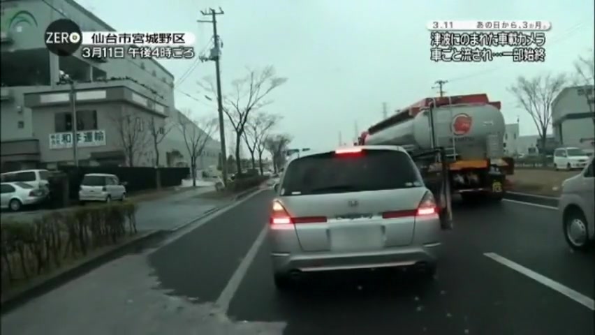 A car camera had captured the Japan Earthquake and Tsunami incoming while sitting in traffic.