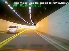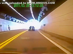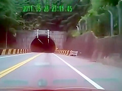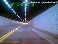 This guy gets a surprise as he rounds the corner within the tunnel.