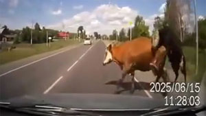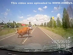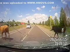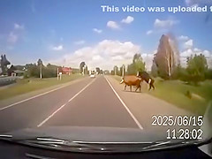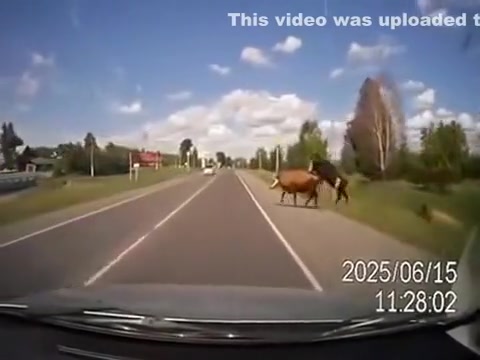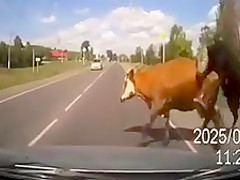 2 Cows Hump While Crossing The Road and Pay For It