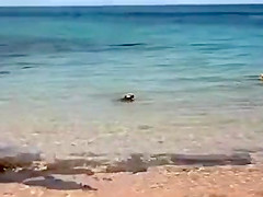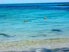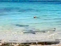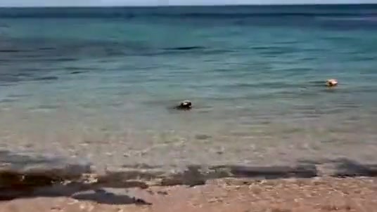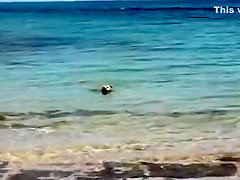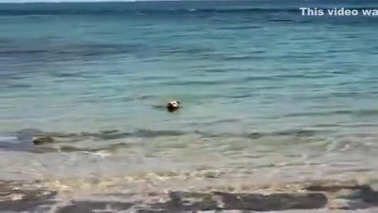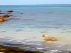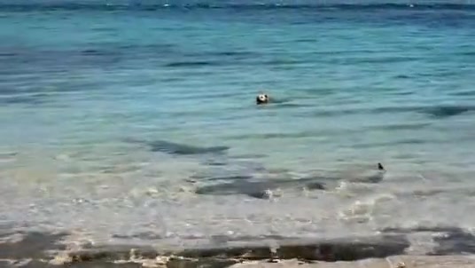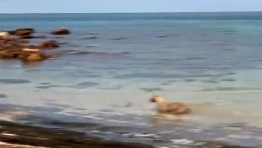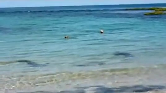 Sometimes dogs have no fear of anything, even a bunch of 12 foot+ sharks swimming around. In fact, the dogs let them know who's boss!
