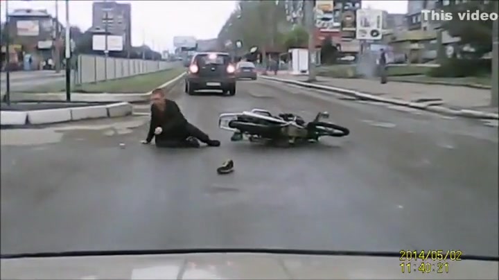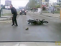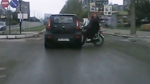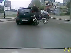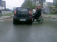 Two Guys On Motorcycle Faceplant Into Car, Just another day in Russia.