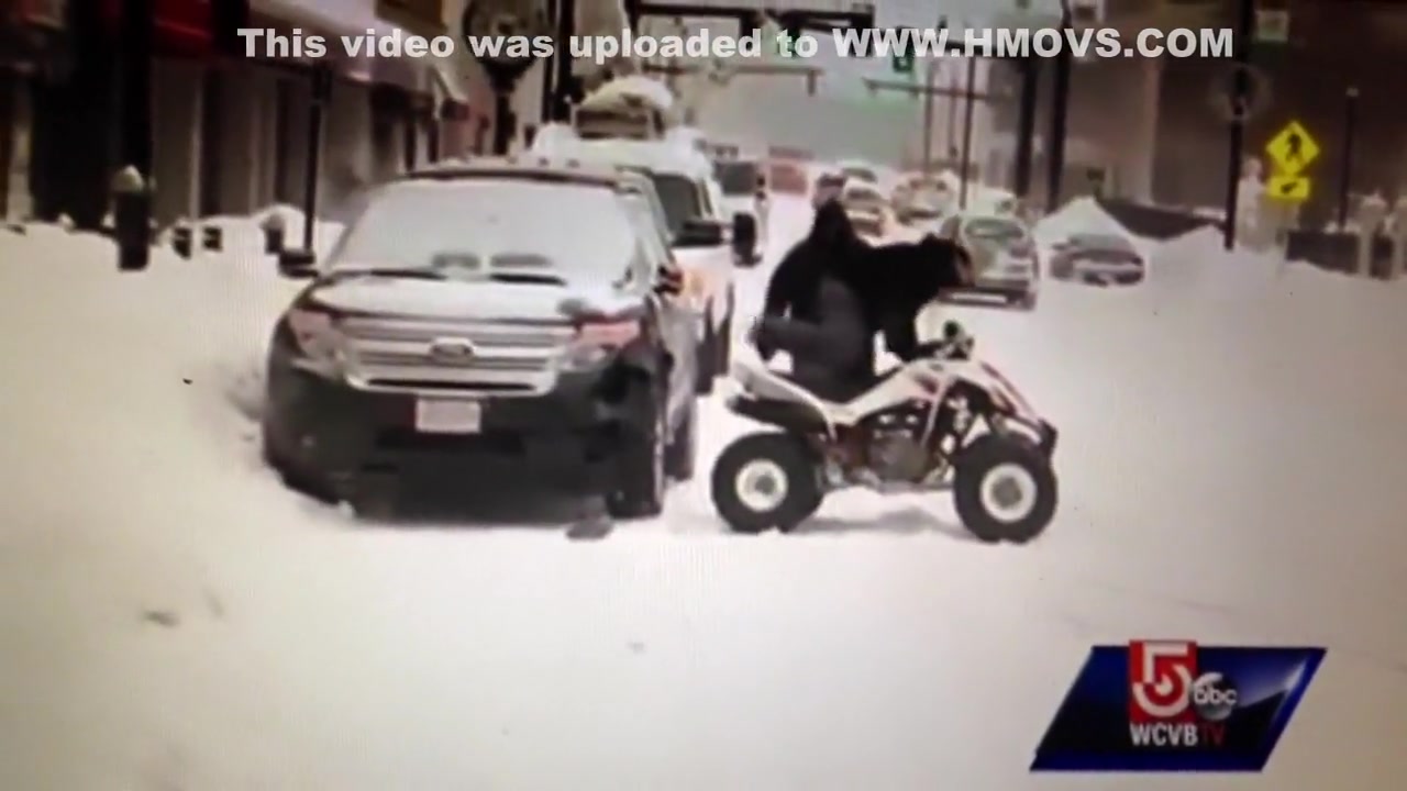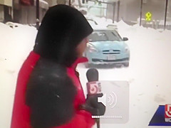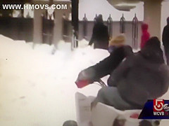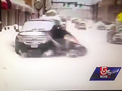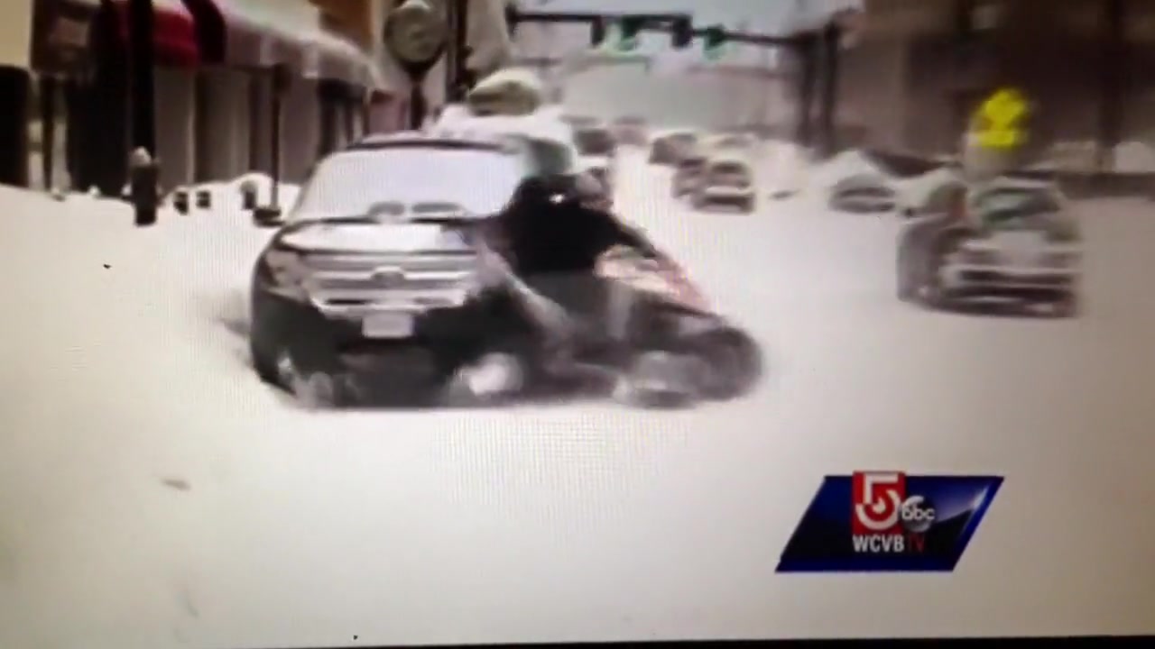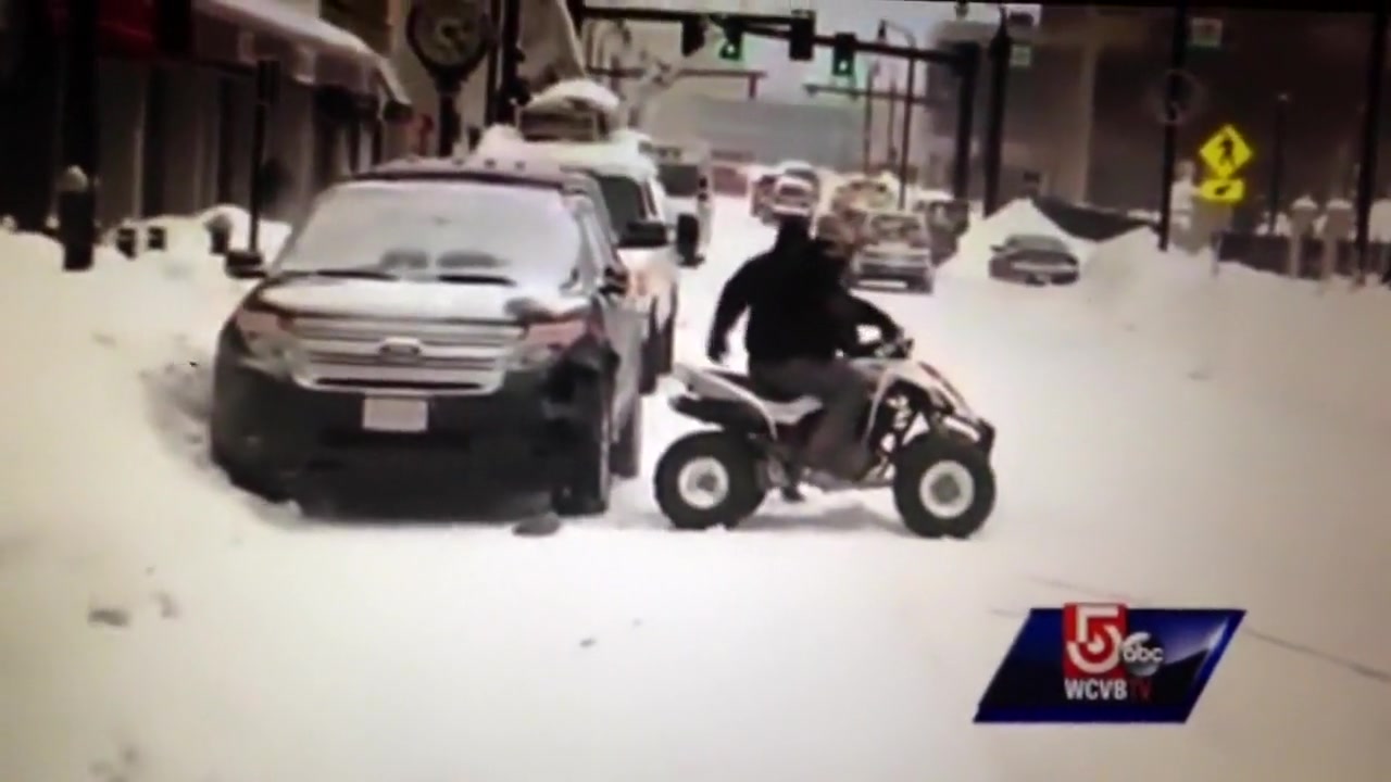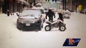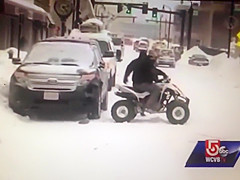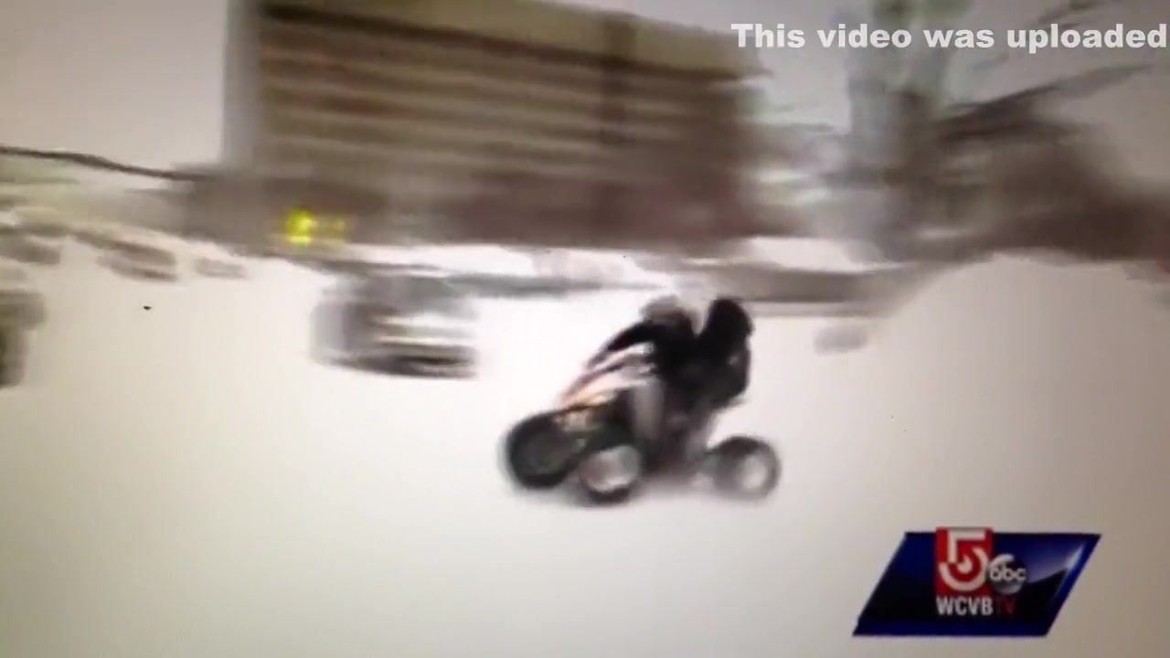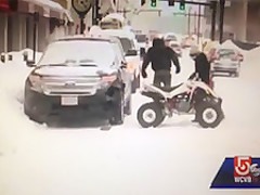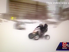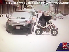 A live news cast catches a couple idiots on a four wheeler do a hit and run during a snow storm in Worcester, MA.