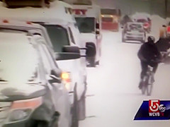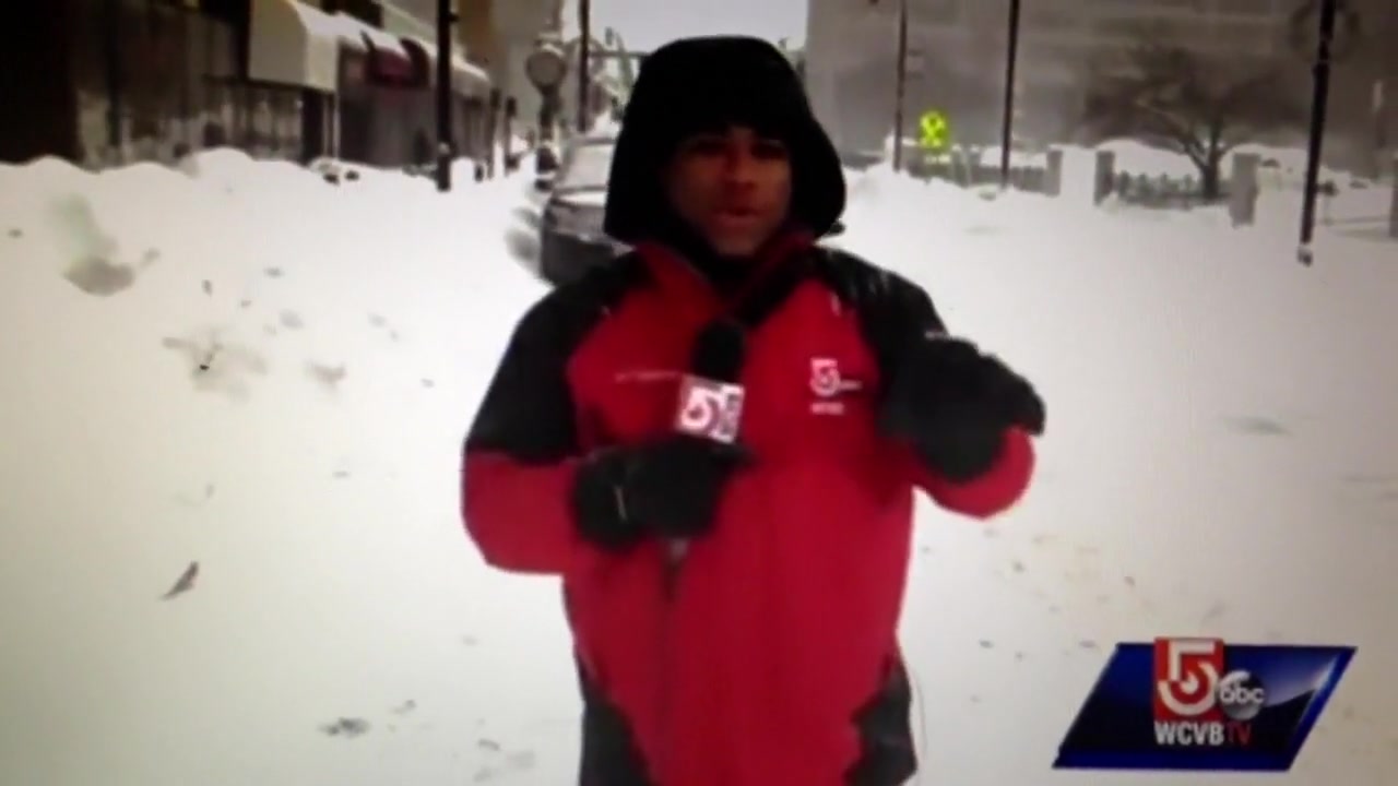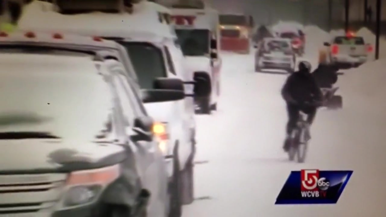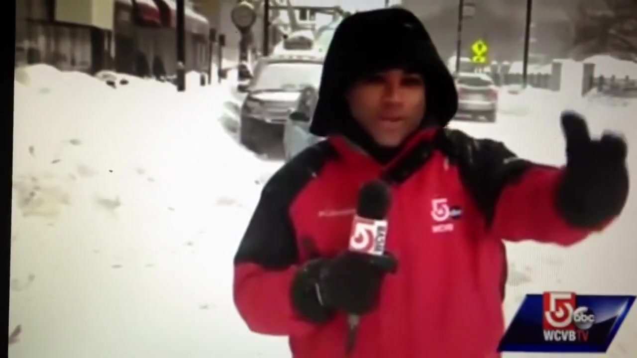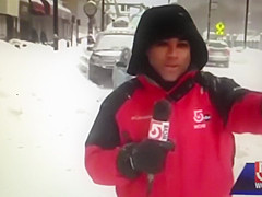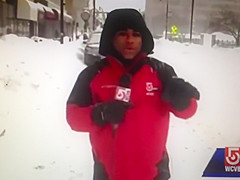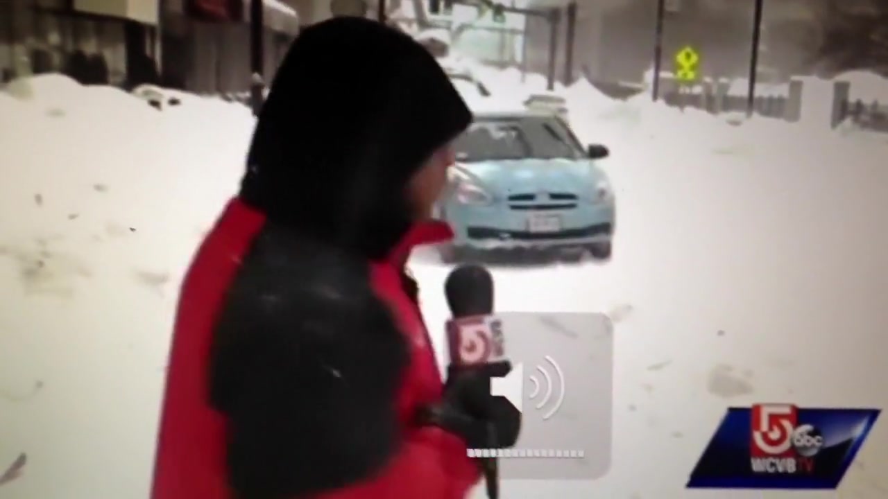 A live news cast catches a couple idiots on a four wheeler do a hit and run during a snow storm in Worcester, MA.