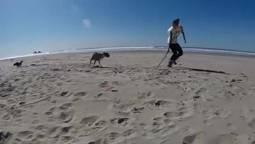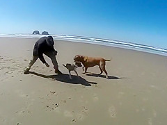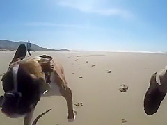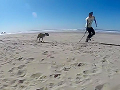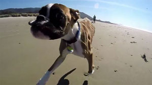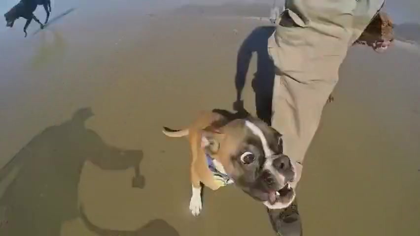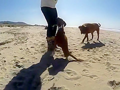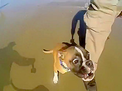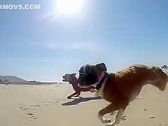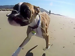 Two Legged Boxer Goes To The Beach