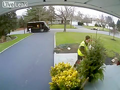 This delivery man hates Christmas. I didn't know Mr. Grinch worked for UPS.