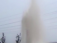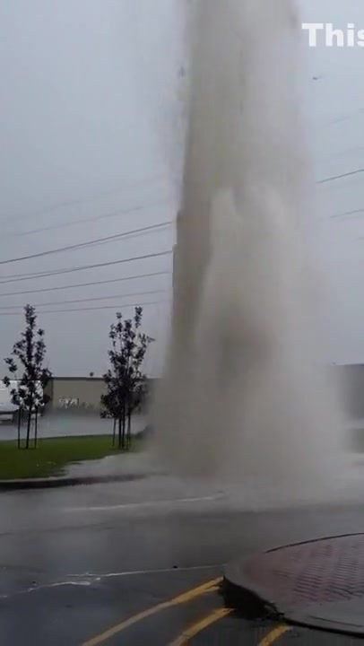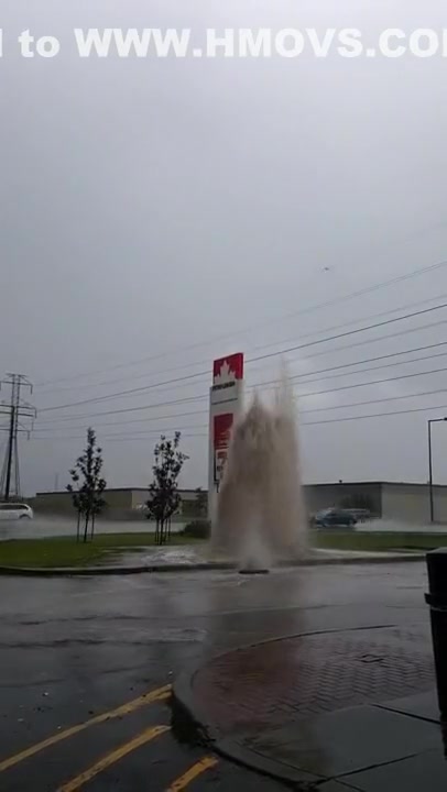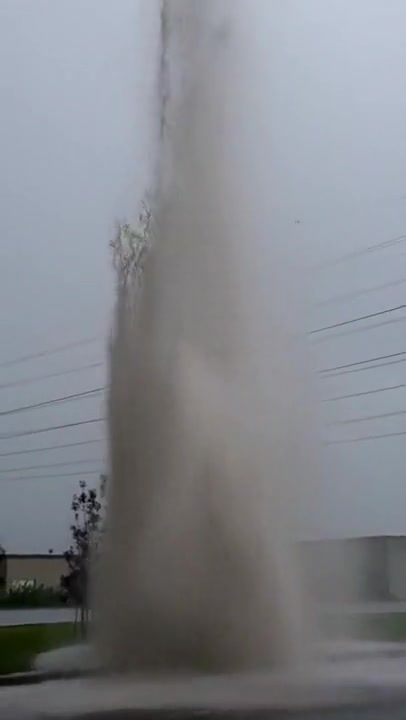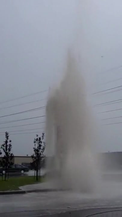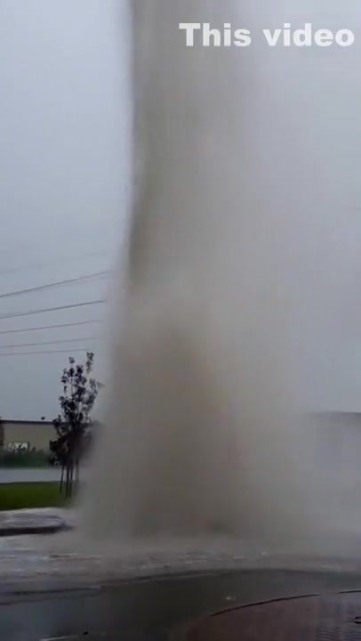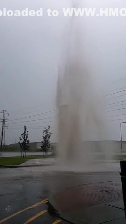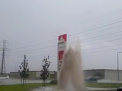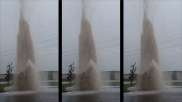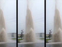 Water Main Explodes During Thunder Storm