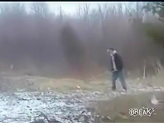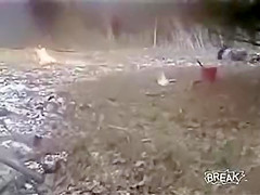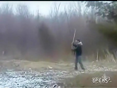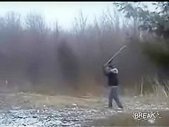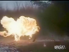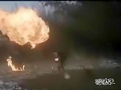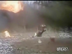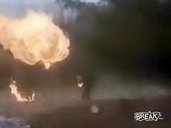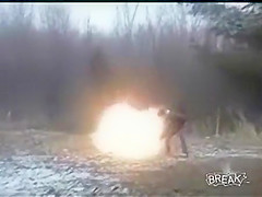 This kid hits a WD40 can thats on fire. What did he expect to happen!