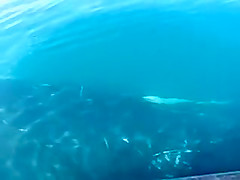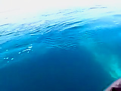 Huge whales come right up to a father and daughter in a canoe. Watch it a second time with your eyes closed and it sounds a bit different. A co-worker yelled out "What the hell you waching?".