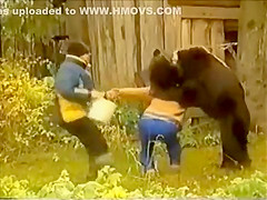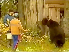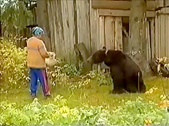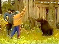 I like how the video says "Do not try this at home". Yeah, like I have a bear tied to my tree in the backyard. Only in Russia.