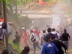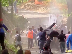 Thank goodness for those trees or some onlookers would be flattened.