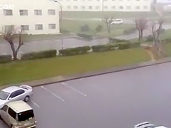 Typhoon Wind Tosses Minivan Like a Ragdoll