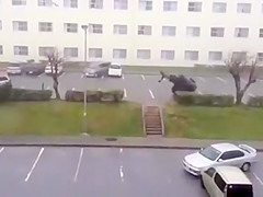 Typhoon Jelawat packed a punch. Check out how it blows a minivan around like a feather.
