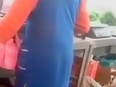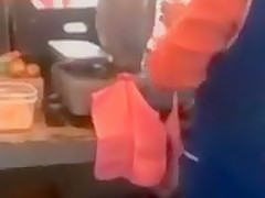 Look closely and you will see the woman weighing down the scale so that the food costs more money.