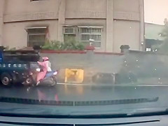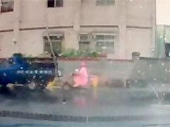 Woman on Scooter Faceplants Hard Into Truck
