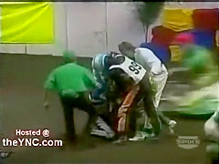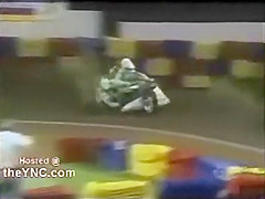 This woman was run over during a race. The 300lb bike must have felt great.
