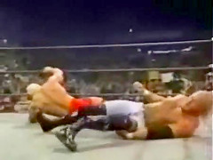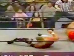 This wrestler breaks his leg. This is painful to watch!
