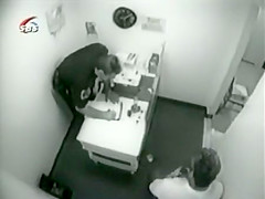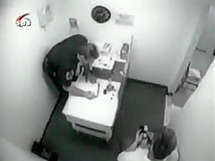 This guy was arrested for DUI. He is so drunk he falls and puts his head through the wall while he was getting booked.