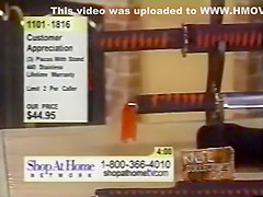 Another blooper on the home shopping network. A katana blade breaks and stabs the host.