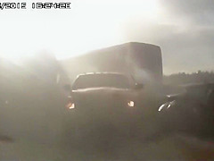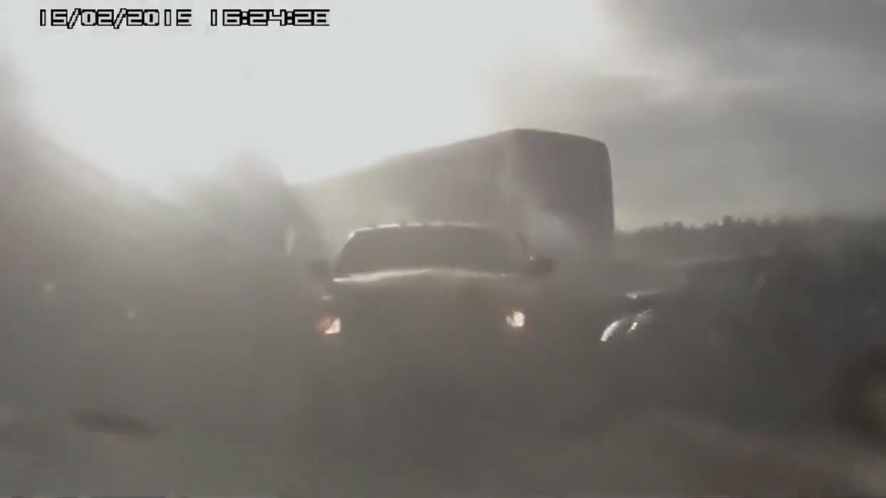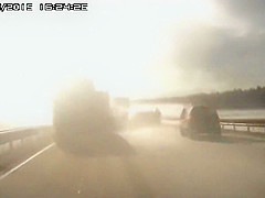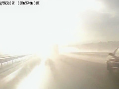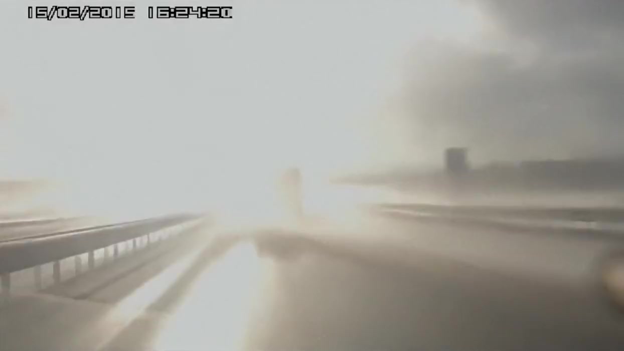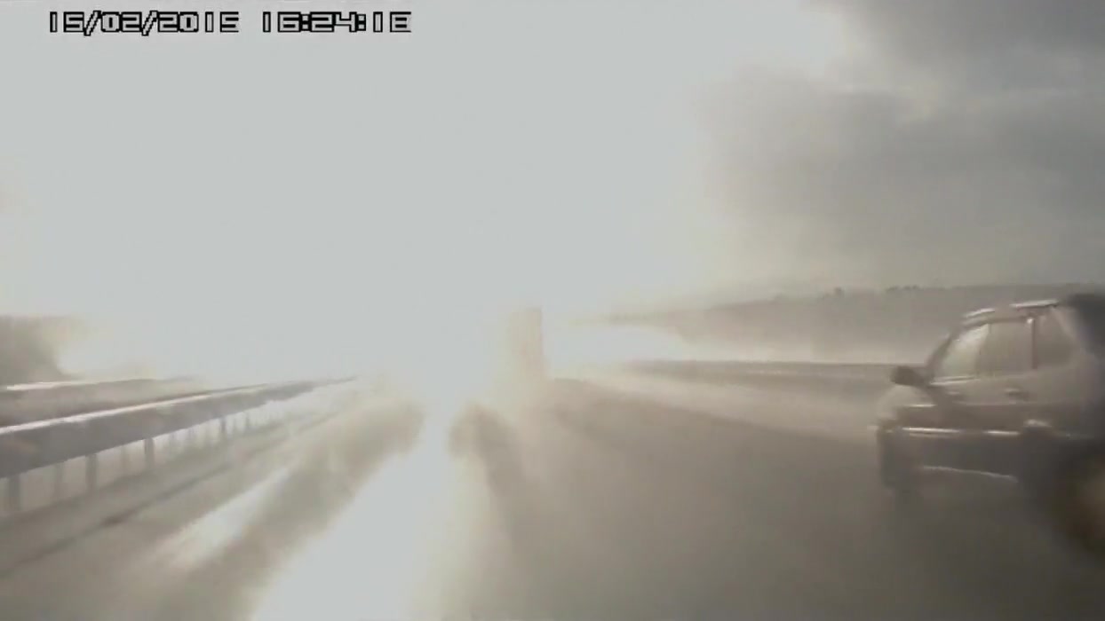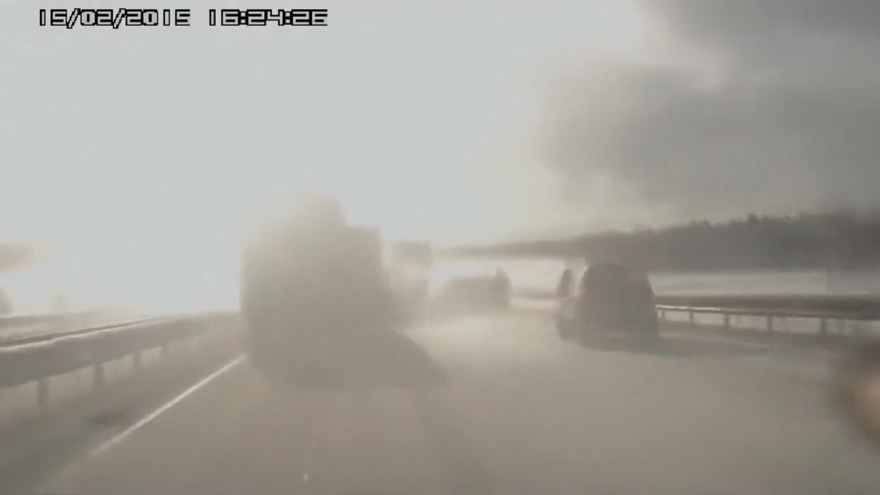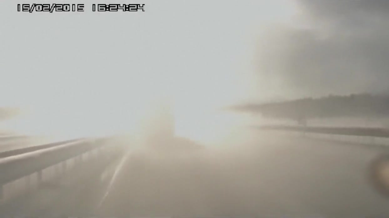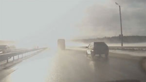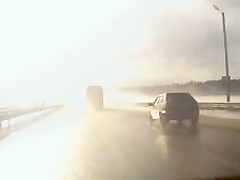 Bright sun and falling snow makes it impossible to see without sunglasses.