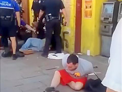 5 Cops Tackle and Taze Black Man As Handcuffed White Dude Makes Escape