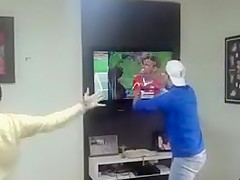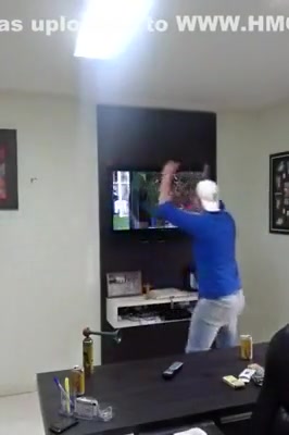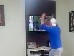 This guy couldn't contain his excitement and smashes his tv.