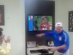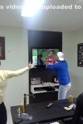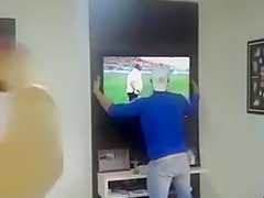 Brazil Fan Celebrates By Smashing His TV