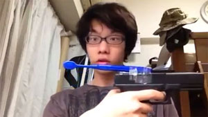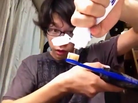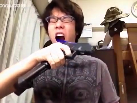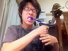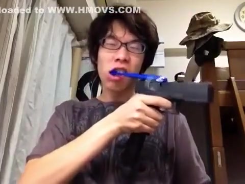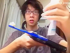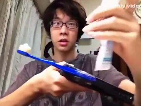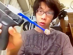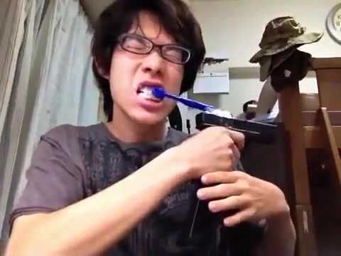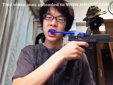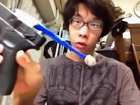 A Japanese kid shows you how to brush your teeth with a hand gun.