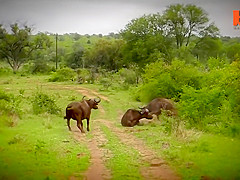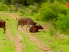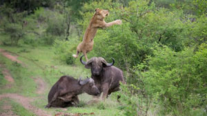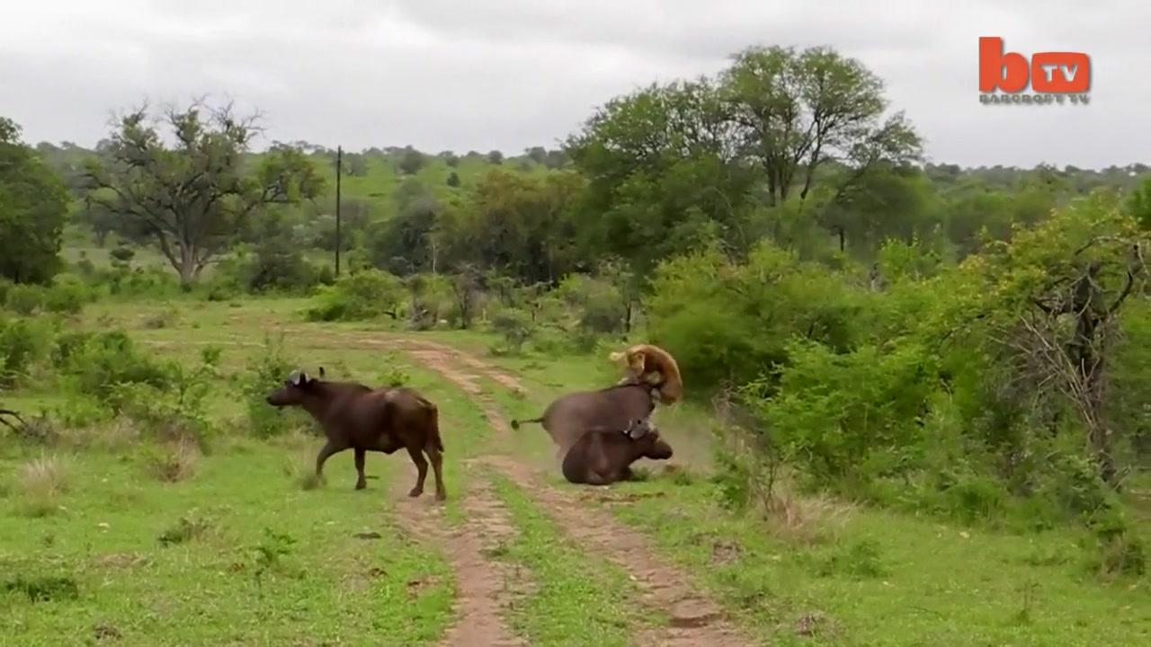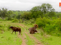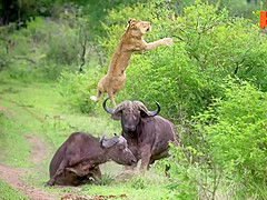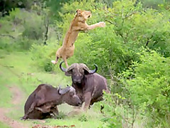 Buffalo Launches Lion Into The Air For Snacking On His Friend