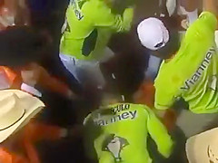 Russian Chick Takes a Selfie While Two Drunk Guys Pu...