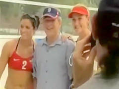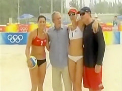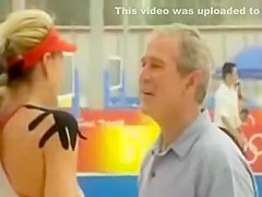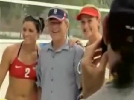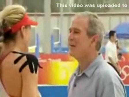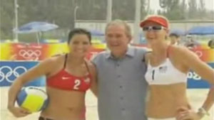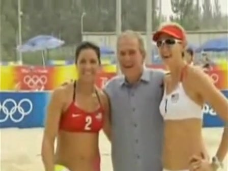Bush is obviously flirting with the womens beach volleyball gold medalists. What a pimp...lol