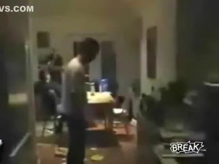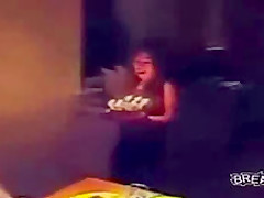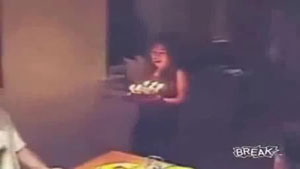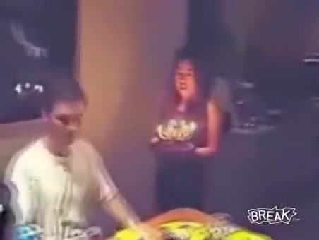 This guy is pissed off after his girlfriend smashes a cake with lit candles into his face.