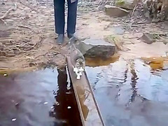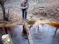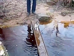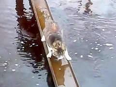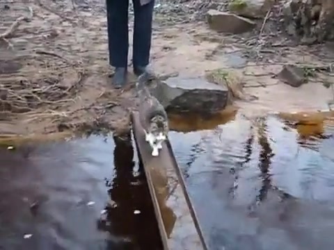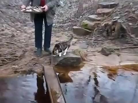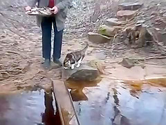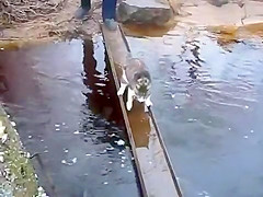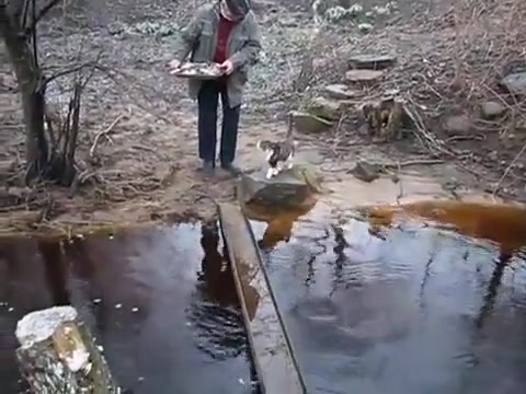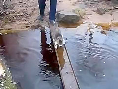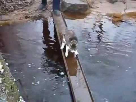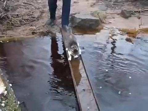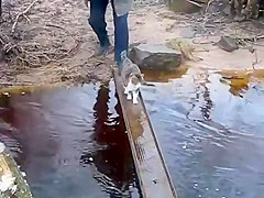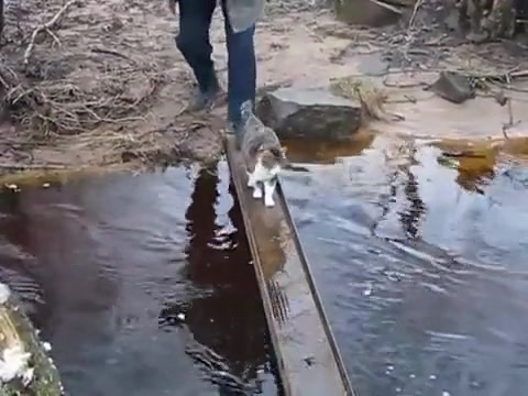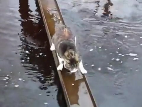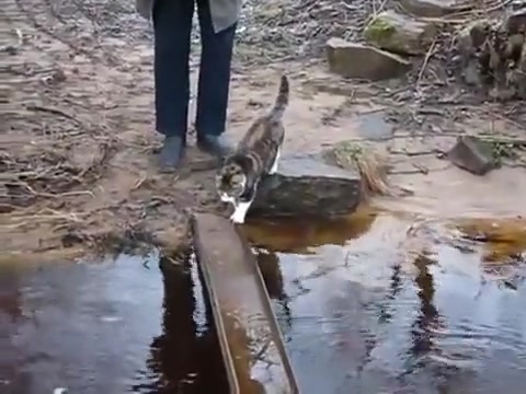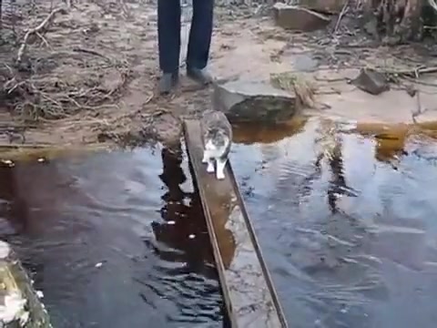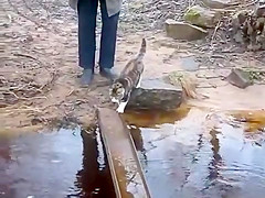 Cat Avoids Water On Bridge