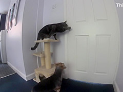 Cat Helps Dog Escape The Kitchen, Wait for it...