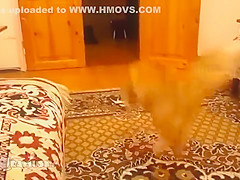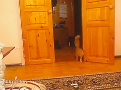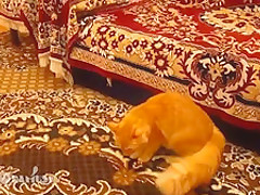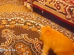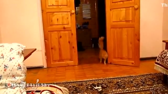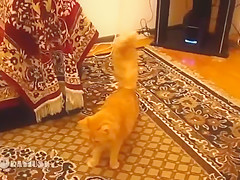 This cat is scared to death every time his owner jumps in Super Mario bros.
