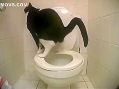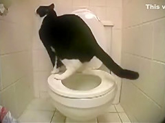 This cat has been trained to shit in a toilet.