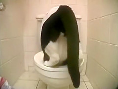 Cat Shits in a Toilet
